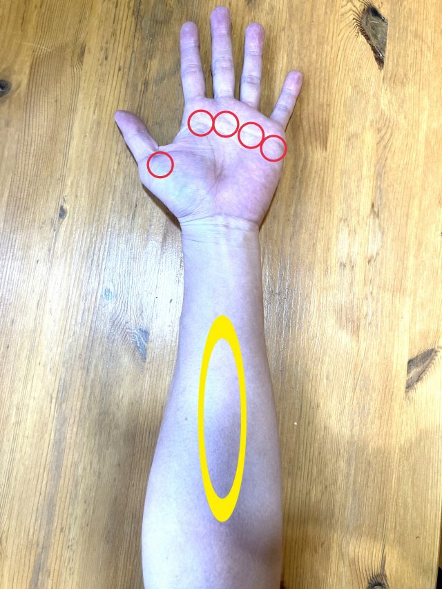 指の疲労はもちろん、手の平の中の筋肉の緊張を取り除くと改善しやすいです。