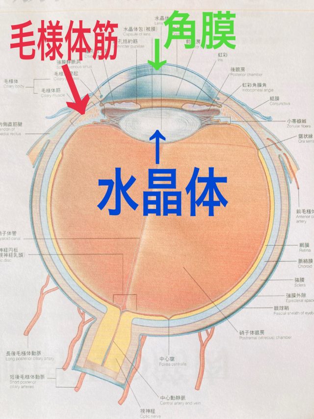 水晶体を操る筋肉(毛様体筋)が正常に動かなくなってしまっている状態です。